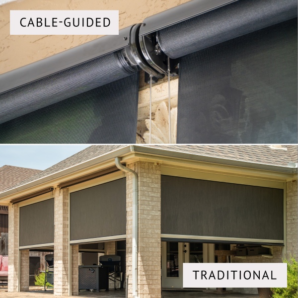 Shade Sense Outdoor focuses on quality with durable, precisely made products that have laser-cut edges, welded seams, and reinforced corners. Strict quality checks ensure flawless fabrics and construction. Custom-built to your dimensions, style, and needs, our motorized screens meet a wide range of needs.